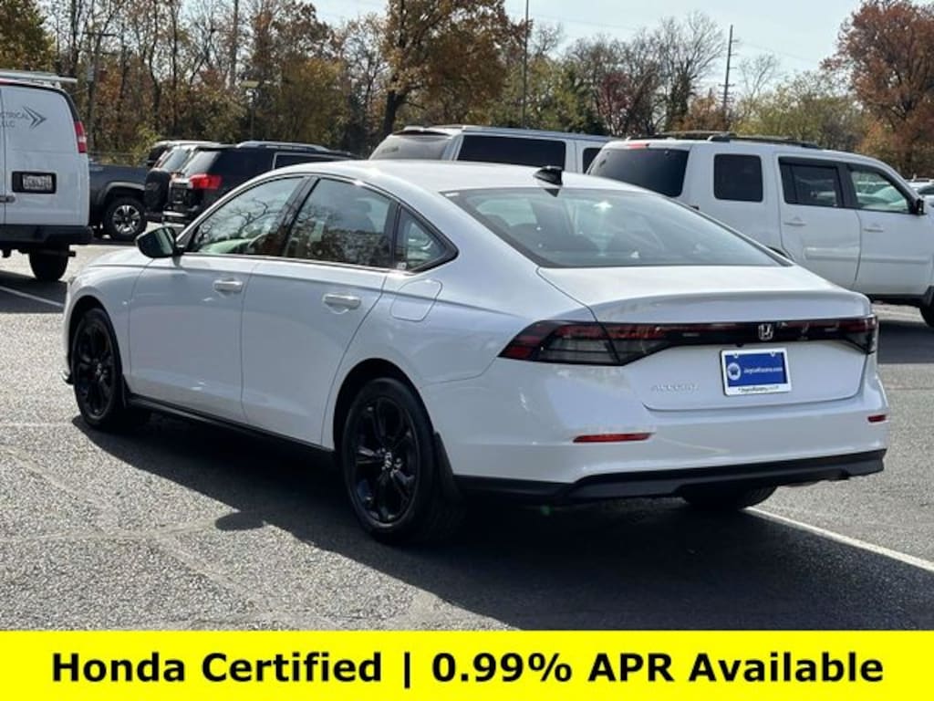 CARFAX One-Owner. Clean CARFAX. Certified. Platinum White Pearl 2025 Honda Accord SE ***ONE OWNER***, ***LOW MILES***, ***DEALER MAINTAINED***, ***EXCELLENT CONDITION***, ***HONDA CERTIFIED***, ***ADAPTIVE CRUISE CONTROL***, ***ALLOY WHEELS***, ***BACK UP CAMERA***, ***BLIND SIDE MONITORING***, ***FORWARD COLLISION ALERT***, ***LANE DEPARTURE WARNING***, ***HEATED SEATS***, ***POWER MOONROOF***, ***POWER SEAT***, ***REMOTE START***, HondaTrue Certified Certified, Black Cloth, 4-Wheel Disc Brakes, 8 Speakers, ABS brakes, Adaptive Cruise Control: Adaptive Cruise Control (ACC) with Low-Speed Follow, Air Conditioning, Alloy wheels, AM/FM radio, Apple CarPlay/Android Auto, Auto High-beam Headlights, Automatic temperature control, Blind Spot Information (BSI) System warning, Brake assist, Bumpers: body-color, Compass, Delay-off headlights, Driver door bin, Driver vanity mirror, Dual front impact airbags, Dual front side impact airbags, Electronic Stability Control, Emergency communication system: HondaLink Assist, Exterior Parking Camera Rear, Fabric Seat Trim, Four wheel independent suspension, Front anti-roll bar, Front Bucket Seats, Front Center Armrest, Front dual zone A/C, Front reading lights, Fully automatic headlights, Heated door mirrors, Heated Front Bucket Seats, Heated front seats, Illuminated entry, Knee airbag, Lane departure: Lane Keeping Assist System (LKAS) active, Low tire pressure warning, Occupant sensing airbag, Outside temperature display, Overhead airbag, Overhead console, Panic alarm, Passenger door bin, Passenger vanity mirror, Power door mirrors, Power driver seat, Power moonroof, Power steering, Power windows, Radio data system, Radio: 180-Watt Audio System, Rear anti-roll bar, Rear reading lights, Rear seat center armrest, Rear side impact airbag, Rear window defroster, Remote keyless entry, Security system, Speed control, Speed-sensing steering, Speed-Sensitive Wipers, Split folding rear seat, Steering wheel mounted audio controls, Tachometer, Telescoping steering wheel, Tilt steering wheel, Traction control, Trip computer, Variably intermittent wipers, Wheels: 17" x 7.5J Berlina Black, Black Cloth.