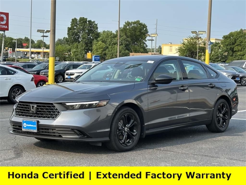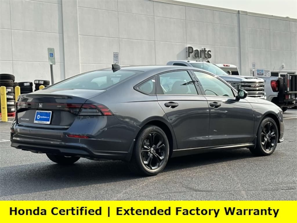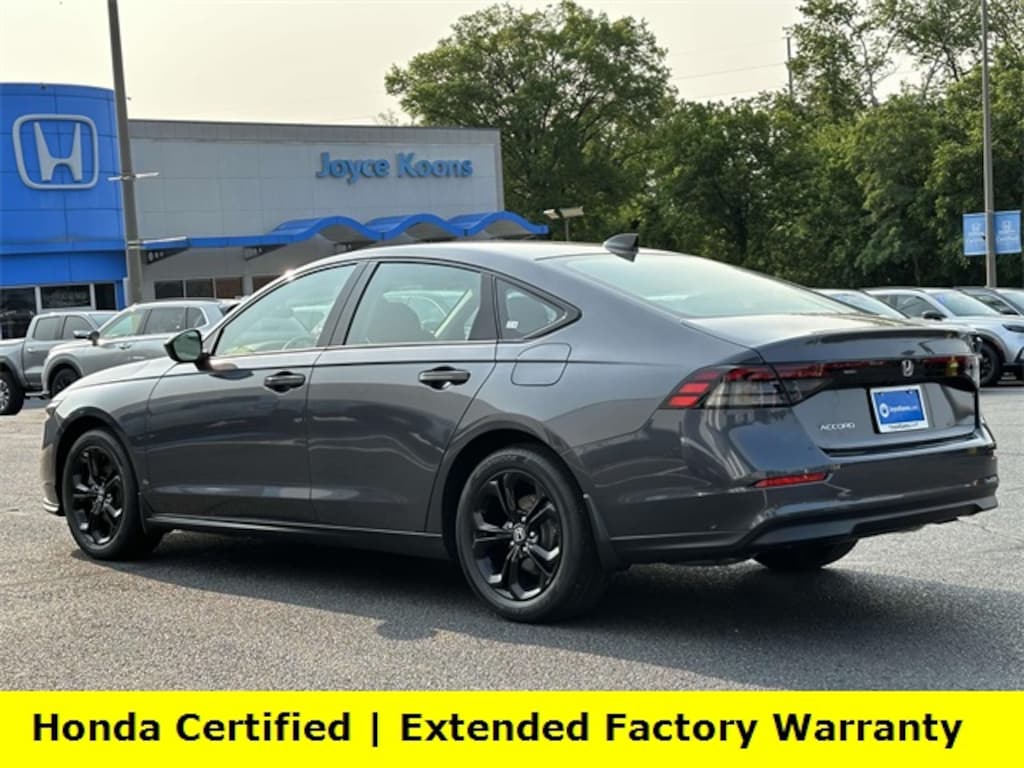 CARFAX One-Owner. Clean CARFAX. Certified. Meteorite Gray Metallic 2025 Honda Accord SE ***ONE OWNER***, ***LOW MILES***, ***DEALER MAINTAINED***, ***EXCELLENT CONDITION***, ***HONDA CERTIFIED***, ***ADAPTIVE CRUISE CONTROL***, ***ALLOY WHEELS***, ***BACK UP CAMERA***, ***BLIND SIDE MONITORING***, ***FORWARD COLLISION ALERT***, ***LANE DEPARTURE WARNING***, ***HEATED SEATS***, ***POWER MOONROOF***, ***POWER SEAT***, ***REMOTE START***, HondaTrue Certified Certified, Black Cloth, 4-Wheel Disc Brakes, 8 Speakers, ABS brakes, Adaptive Cruise Control: Adaptive Cruise Control (ACC) with Low-Speed Follow, Air Conditioning, Alloy wheels, AM/FM radio, Apple CarPlay/Android Auto, Auto High-beam Headlights, Automatic temperature control, Blind Spot Information (BSI) System warning, Brake assist, Bumpers: body-color, Compass, Delay-off headlights, Driver door bin, Driver vanity mirror, Dual front impact airbags, Dual front side impact airbags, Electronic Stability Control, Emergency communication system: HondaLink Assist, Exterior Parking Camera Rear, Fabric Seat Trim, Four wheel independent suspension, Front anti-roll bar, Front Bucket Seats, Front Center Armrest, Front dual zone A/C, Front reading lights, Fully automatic headlights, Heated door mirrors, Heated Front Bucket Seats, Heated front seats, Illuminated entry, Knee airbag, Lane departure: Lane Keeping Assist System (LKAS) active, Low tire pressure warning, Occupant sensing airbag, Outside temperature display, Overhead airbag, Overhead console, Panic alarm, Passenger door bin, Passenger vanity mirror, Power door mirrors, Power driver seat, Power moonroof, Power steering, Power windows, Radio data system, Radio: 180-Watt Audio System, Rear anti-roll bar, Rear reading lights, Rear seat center armrest, Rear side impact airbag, Rear window defroster, Remote keyless entry, Security system, Speed control, Speed-sensing steering, Speed-Sensitive Wipers, Split folding rear seat, Steering wheel mounted audio controls, Tachometer, Telescoping steering wheel, Tilt steering wheel, Traction control, Trip computer, Variably intermittent wipers, Wheels: 17" x 7.5J Berlina Black, Black Cloth.