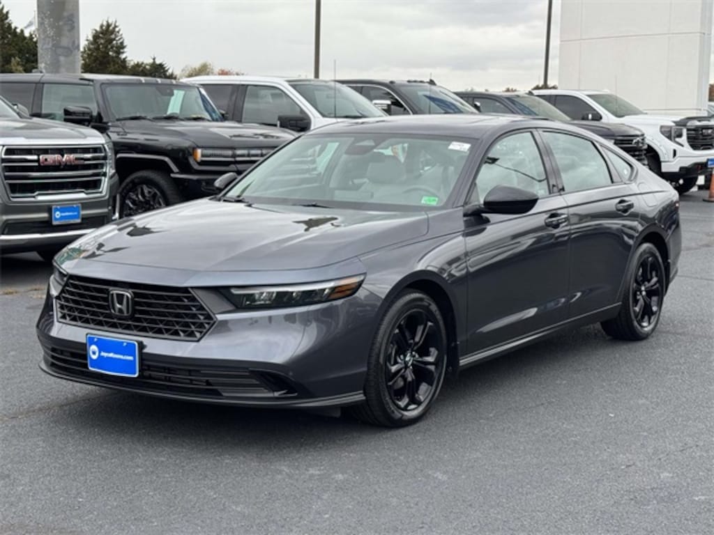 Clean CARFAX. Certified. Meteorite Gray Metallic 2025 Honda Accord SE ***ONE OWNER***, ***LOW MILES***, ***DEALER MAINTAINED***, ***EXCELLENT CONDITION***, ***HONDA CERTIFIED***, ***ADAPTIVE CRUISE CONTROL***, ***ALLOY WHEELS***, ***BACK UP CAMERA***, ***BLIND SIDE MONITORING***, ***FORWARD COLLISION ALERT***, ***LANE DEPARTURE WARNING***, ***HEATED SEATS***, ***POWER MOONROOF***, ***POWER SEAT***, ***REMOTE START***, HondaTrue Certified Certified, Gray w/Fabric Seat Trim, 4-Wheel Disc Brakes, 8 Speakers, ABS brakes, Adaptive Cruise Control: Adaptive Cruise Control (ACC) with Low-Speed Follow, Air Conditioning, Alloy wheels, AM/FM radio, Apple CarPlay/Android Auto, Auto High-beam Headlights, Automatic temperature control, Blind Spot Information (BSI) System warning, Brake assist, Bumpers: body-color, Compass, Delay-off headlights, Driver door bin, Driver vanity mirror, Dual front impact airbags, Dual front side impact airbags, Electronic Stability Control, Emergency communication system: HondaLink Assist, Exterior Parking Camera Rear, Fabric Seat Trim, Four wheel independent suspension, Front anti-roll bar, Front Bucket Seats, Front Center Armrest, Front dual zone A/C, Front reading lights, Fully automatic headlights, Heated door mirrors, Heated Front Bucket Seats, Heated front seats, Illuminated entry, Knee airbag, Lane departure: Lane Keeping Assist System (LKAS) active, Low tire pressure warning, Occupant sensing airbag, Outside temperature display, Overhead airbag, Overhead console, Panic alarm, Passenger door bin, Passenger vanity mirror, Power door mirrors, Power driver seat, Power moonroof, Power steering, Power windows, Radio data system, Radio: 180-Watt Audio System, Rear anti-roll bar, Rear reading lights, Rear seat center armrest, Rear side impact airbag, Rear window defroster, Remote keyless entry, Security system, Speed control, Speed-sensing steering, Speed-Sensitive Wipers, Split folding rear seat, Steering wheel mounted audio controls, Tachometer, Telescoping steering wheel, Tilt steering wheel, Traction control, Trip computer, Variably intermittent wipers, Wheels: 17" x 7.5J Berlina Black, Gray w/Fabric Seat Trim.