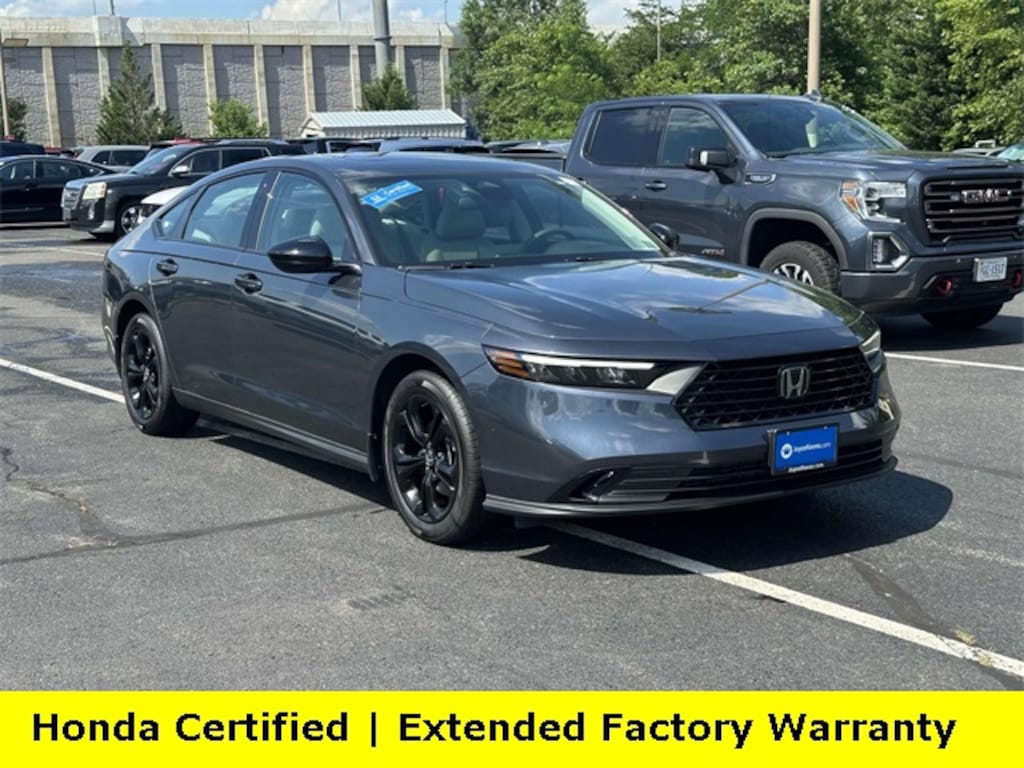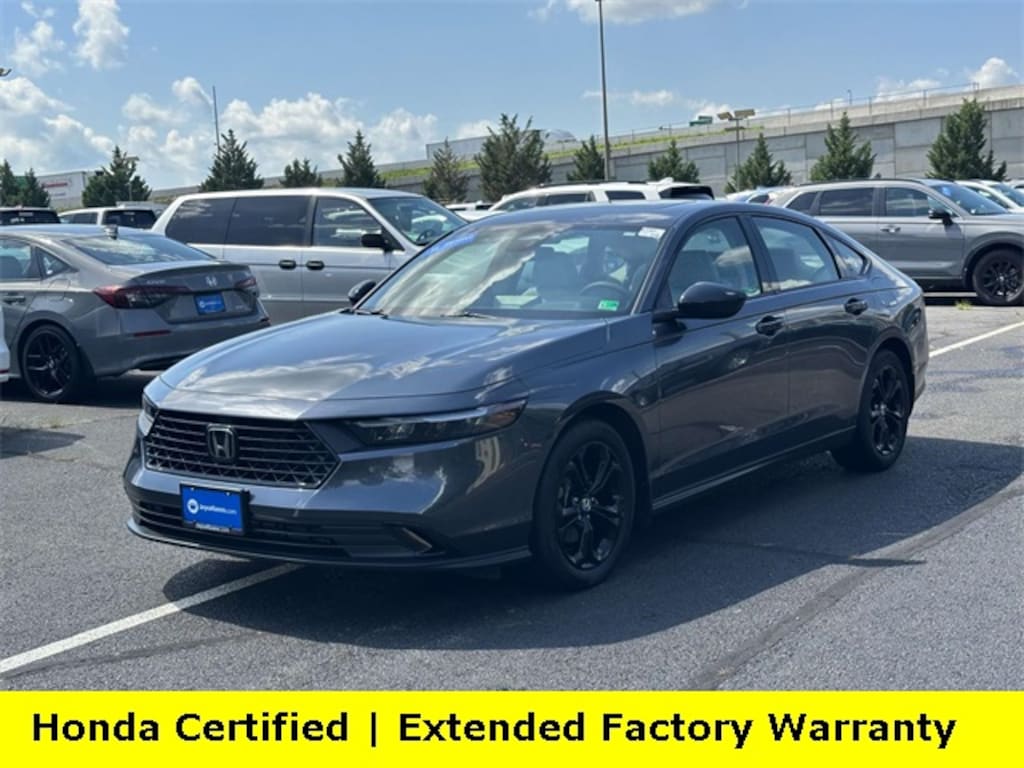 CARFAX One-Owner. Clean CARFAX. Certified. Meteorite Gray Metallic 2025 Honda Accord SE ***ONE OWNER***, ***LOW MILES***, ***DEALER MAINTAINED***, ***EXCELLENT CONDITION***, ***HONDA CERTIFIED***, ***ADAPTIVE CRUISE CONTROL***, ***ALLOY WHEELS***, ***BACK UP CAMERA***, ***BLIND SIDE MONITORING***, ***FORWARD COLLISION ALERT***, ***LANE DEPARTURE WARNING***, ***HEATED SEATS***, ***POWER MOONROOF***, ***POWER SEAT***, ***REMOTE START***, HondaTrue Certified Certified, Gray Cloth, 4-Wheel Disc Brakes, 8 Speakers, ABS brakes, Adaptive Cruise Control: Adaptive Cruise Control (ACC) with Low-Speed Follow, Air Conditioning, Alloy wheels, AM/FM radio, Apple CarPlay/Android Auto, Auto High-beam Headlights, Automatic temperature control, Blind Spot Information (BSI) System warning, Brake assist, Bumpers: body-color, Compass, Delay-off headlights, Driver door bin, Driver vanity mirror, Dual front impact airbags, Dual front side impact airbags, Electronic Stability Control, Emergency communication system: HondaLink Assist, Exterior Parking Camera Rear, Fabric Seat Trim, Four wheel independent suspension, Front anti-roll bar, Front Bucket Seats, Front Center Armrest, Front dual zone A/C, Front reading lights, Fully automatic headlights, Heated door mirrors, Heated Front Bucket Seats, Heated front seats, Illuminated entry, Knee airbag, Lane departure: Lane Keeping Assist System (LKAS) active, Low tire pressure warning, Occupant sensing airbag, Outside temperature display, Overhead airbag, Overhead console, Panic alarm, Passenger door bin, Passenger vanity mirror, Power door mirrors, Power driver seat, Power moonroof, Power steering, Power windows, Radio data system, Radio: 180-Watt Audio System, Rear anti-roll bar, Rear reading lights, Rear seat center armrest, Rear side impact airbag, Rear window defroster, Remote keyless entry, Security system, Speed control, Speed-sensing steering, Speed-Sensitive Wipers, Split folding rear seat, Steering wheel mounted audio controls, Tachometer, Telescoping steering wheel, Tilt steering wheel, Traction control, Trip computer, Variably intermittent wipers, Wheels: 17" x 7.5J Berlina Black, Gray Cloth.