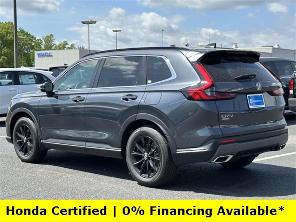 CARFAX One-Owner. Clean CARFAX. Certified. Meteorite Gray Metallic 2025 Honda CR-V Hybrid Sport ***ONE OWNER***, ***LOW MILES***, ***DEALER MAINTAINED***, ***EXCELLENT CONDITION***, ***HONDA CERTIFIED***, ***ALL WHEEL DRIVE***, ***ADAPTIVE CRUISE CONTROL***, ***ALLOY WHEELS***, ***BACK UP CAMERA***, ***BLIND SIDE MONITORING***, ***FORWARD COLLISION ALERT***, ***LANE DEPARTURE WARNING***, ***HEATED SEATS***, ***POWER MOONROOF***, ***POWER SEAT***, ***REMOTE START***, HondaTrue Certified Certified, 2.0L I4 DOHC 16V, 4-Wheel Disc Brakes, 6 Speakers, ABS brakes, Adaptive Cruise Control: Adaptive Cruise Control (ACC) with Low-Speed Follow, Air Conditioning, Alloy wheels, Apple CarPlay/Android Auto, Auto High-beam Headlights, Automatic temperature control, Blind Spot Information (BSI) System warning, Brake assist, Bumpers: body-color, Cloth Seat Trim, Compass, Delay-off headlights, Driver door bin, Driver vanity mirror, Dual front impact airbags, Dual front side impact airbags, Electronic Stability Control, Exterior Parking Camera Rear, Four wheel independent suspension, Front anti-roll bar, Front Bucket Seats, Front Center Armrest, Front dual zone A/C, Front reading lights, Fully automatic headlights, Heated door mirrors, Heated Front Bucket Seats, Heated front seats, Illuminated entry, Knee airbag, Leather Shift Knob, Leather steering wheel, Low tire pressure warning, Occupant sensing airbag, Outside temperature display, Overhead airbag, Overhead console, Panic alarm, Passenger door bin, Passenger vanity mirror, Power door mirrors, Power driver seat, Power moonroof, Power steering, Power windows, Radio data system, Radio: 240-Watt AM/FM Audio System, Rear anti-roll bar, Rear reading lights, Rear seat center armrest, Rear side impact airbag, Rear window defroster, Rear window wiper, Remote keyless entry, Security system, Speed control, Speed-sensing steering, Speed-Sensitive Wipers, Split folding rear seat, Spoiler, Steering wheel mounted audio controls, Telescoping steering wheel, Tilt steering wheel, Traction control, Trip computer, Turn signal indicator mirrors, Variably intermittent wipers, Wheels: 18" Berlina Black Alloy, 2.0L I4 DOHC 16V.