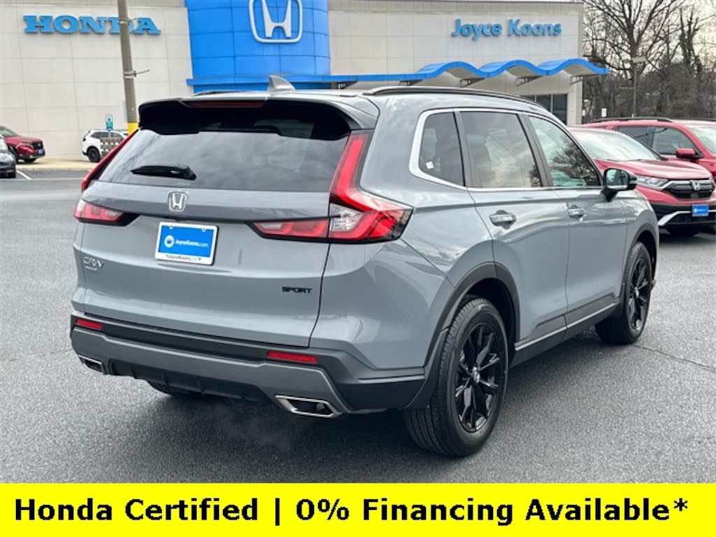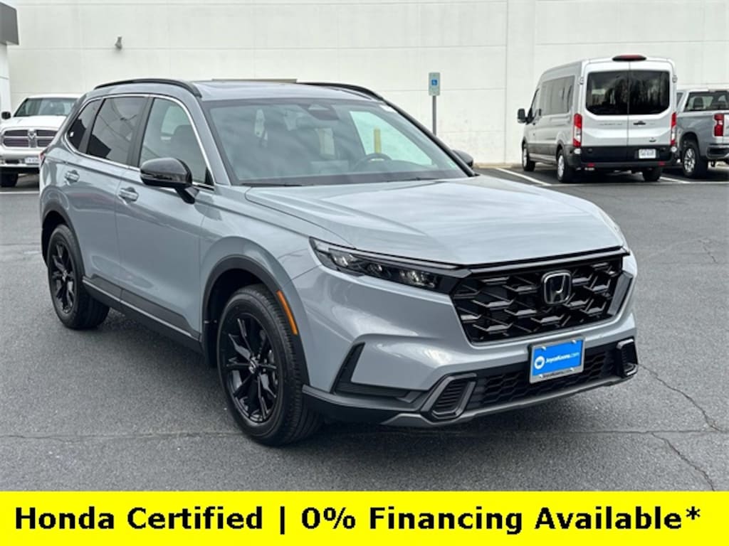 CARFAX One-Owner. Clean CARFAX. Certified. Urban Gray Pearl 2025 Honda CR-V Hybrid Sport ***ONE OWNER***, ***LOW MILES***, ***DEALER MAINTAINED***, ***EXCELLENT CONDITION***, ***HONDA CERTIFIED***, ***ALL WHEEL DRIVE***, ***ADAPTIVE CRUISE CONTROL***, ***ALLOY WHEELS***, ***BACK UP CAMERA***, ***BLIND SIDE MONITORING***, ***FORWARD COLLISION ALERT***, ***LANE DEPARTURE WARNING***, ***HEATED SEATS***, ***POWER MOONROOF***, ***POWER SEAT***, ***REMOTE START***, HondaTrue Certified Certified, 2.0L I4 DOHC 16V, 4-Wheel Disc Brakes, 6 Speakers, ABS brakes, Adaptive Cruise Control: Adaptive Cruise Control (ACC) with Low-Speed Follow, Air Conditioning, Alloy wheels, Apple CarPlay/Android Auto, Auto High-beam Headlights, Automatic temperature control, Blind Spot Information (BSI) System warning, Brake assist, Bumpers: body-color, Cloth Seat Trim, Compass, Delay-off headlights, Driver door bin, Driver vanity mirror, Dual front impact airbags, Dual front side impact airbags, Electronic Stability Control, Exterior Parking Camera Rear, Four wheel independent suspension, Front anti-roll bar, Front Bucket Seats, Front Center Armrest, Front dual zone A/C, Front reading lights, Fully automatic headlights, Heated door mirrors, Heated Front Bucket Seats, Heated front seats, Illuminated entry, Knee airbag, Leather Shift Knob, Leather steering wheel, Low tire pressure warning, Occupant sensing airbag, Outside temperature display, Overhead airbag, Overhead console, Panic alarm, Passenger door bin, Passenger vanity mirror, Power door mirrors, Power driver seat, Power moonroof, Power steering, Power windows, Radio data system, Radio: 240-Watt AM/FM Audio System, Rear anti-roll bar, Rear reading lights, Rear seat center armrest, Rear side impact airbag, Rear window defroster, Rear window wiper, Remote keyless entry, Security system, Speed control, Speed-sensing steering, Speed-Sensitive Wipers, Split folding rear seat, Spoiler, Steering wheel mounted audio controls, Telescoping steering wheel, Tilt steering wheel, Traction control, Trip computer, Turn signal indicator mirrors, Variably intermittent wipers, Wheels: 18" Berlina Black Alloy, 2.0L I4 DOHC 16V.