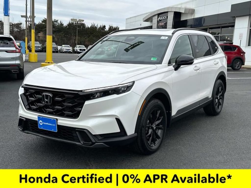 Clean CARFAX. Certified. Platinum White Pearl 2025 Honda CR-V Hybrid Sport ***LOW MILES***, ***LOCAL TRADE***, ***DEALER MAINTAINED***, ***EXCELLENT CONDITION***, ***HONDA CERTIFIED***, ***ALL WHEEL DRIVE***, ***ADAPTIVE CRUISE CONTROL***, ***ALLOY WHEELS***, ***BACK UP CAMERA***, ***BLIND SIDE MONITORING***, ***FORWARD COLLISION ALERT***, ***LANE DEPARTURE WARNING***, ***HEATED SEATS***, ***POWER MOONROOF***, ***POWER SEAT***, ***REMOTE START***, HondaTrue Certified Certified, 2.0L I4 DOHC 16V, 4-Wheel Disc Brakes, 6 Speakers, ABS brakes, Adaptive Cruise Control: Adaptive Cruise Control (ACC) with Low-Speed Follow, Air Conditioning, Alloy wheels, Apple CarPlay/Android Auto, Auto High-beam Headlights, Automatic temperature control, Blind Spot Information (BSI) System warning, Brake assist, Bumpers: body-color, Cloth Seat Trim, Compass, Delay-off headlights, Driver door bin, Driver vanity mirror, Dual front impact airbags, Dual front side impact airbags, Electronic Stability Control, Exterior Parking Camera Rear, Four wheel independent suspension, Front anti-roll bar, Front Bucket Seats, Front Center Armrest, Front dual zone A/C, Front reading lights, Fully automatic headlights, Heated door mirrors, Heated Front Bucket Seats, Heated front seats, Illuminated entry, Knee airbag, Leather Shift Knob, Leather steering wheel, Low tire pressure warning, Occupant sensing airbag, Outside temperature display, Overhead airbag, Overhead console, Panic alarm, Passenger door bin, Passenger vanity mirror, Power door mirrors, Power driver seat, Power moonroof, Power steering, Power windows, Radio data system, Radio: 240-Watt AM/FM Audio System, Rear anti-roll bar, Rear reading lights, Rear seat center armrest, Rear side impact airbag, Rear window defroster, Rear window wiper, Remote keyless entry, Security system, Speed control, Speed-sensing steering, Speed-Sensitive Wipers, Split folding rear seat, Spoiler, Steering wheel mounted audio controls, Telescoping steering wheel, Tilt steering wheel, Traction control, Trip computer, Turn signal indicator mirrors, Variably intermittent wipers, Wheels: 18" Berlina Black Alloy, 2.0L I4 DOHC 16V.