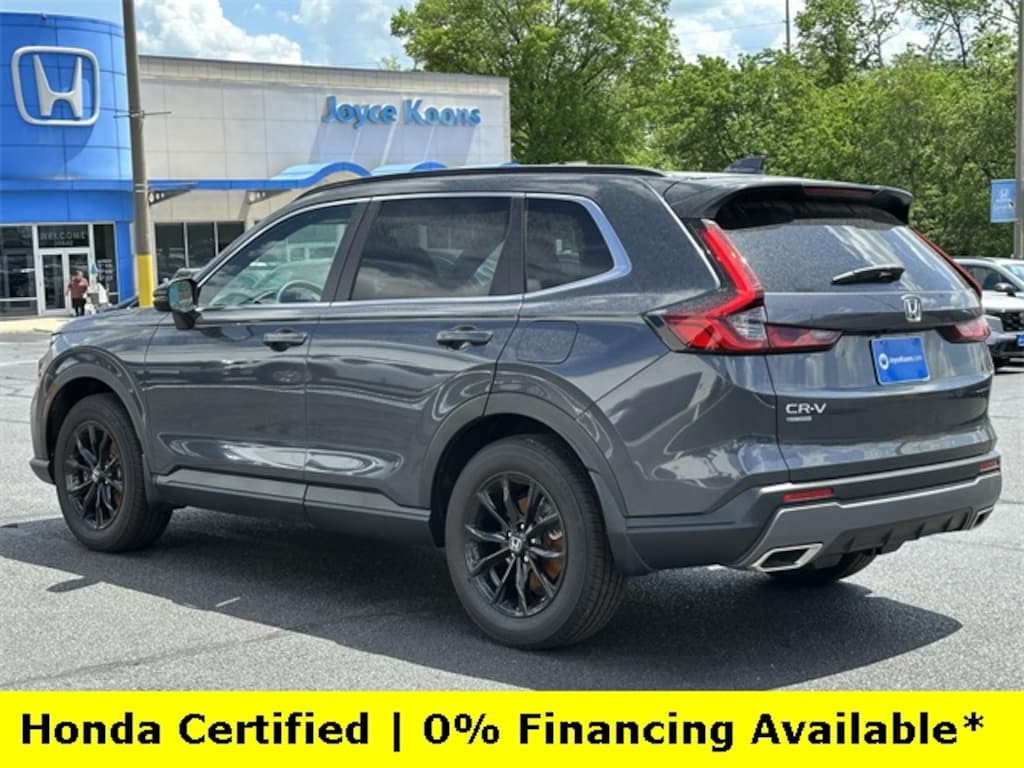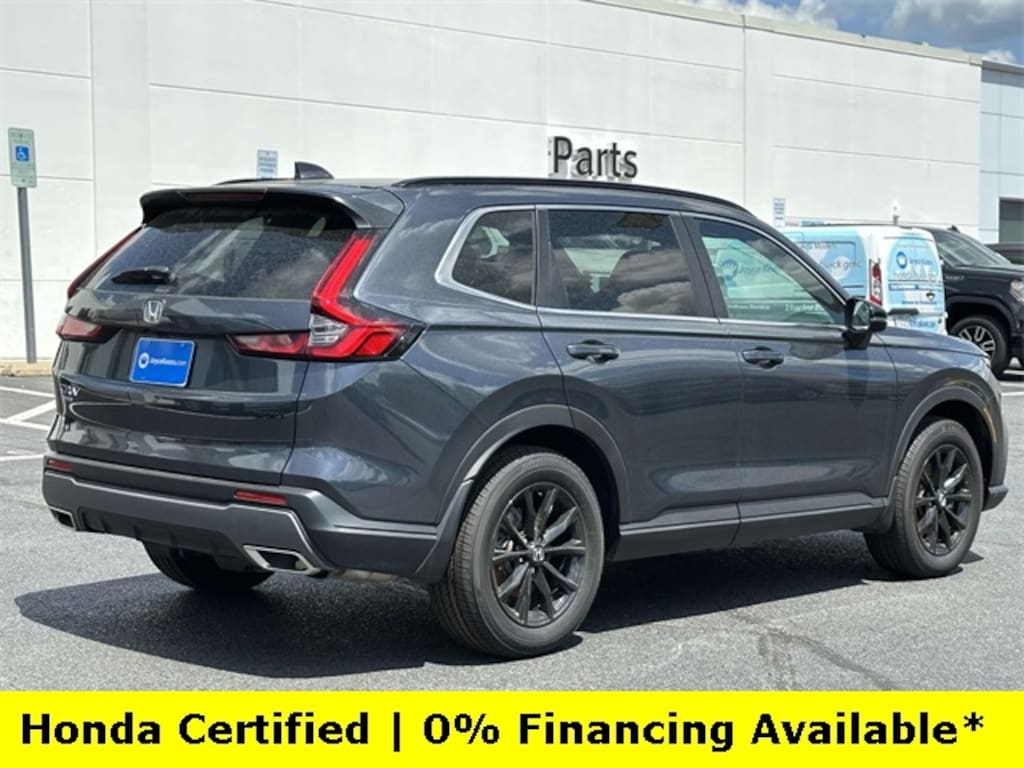 CARFAX One-Owner. Clean CARFAX. Certified. Meteorite Gray Metallic 2025 Honda CR-V Hybrid Sport ***ONE OWNER***, ***LOW MILES***, ***DEALER MAINTAINED***, ***EXCELLENT CONDITION***, ***HONDA CERTIFIED***, ***ALL WHEEL DRIVE***, ***ADAPTIVE CRUISE CONTROL***, ***ALLOY WHEELS***, ***BACK UP CAMERA***, ***BLIND SIDE MONITORING***, ***FORWARD COLLISION ALERT***, ***LANE DEPARTURE WARNING***, ***HEATED SEATS***, ***POWER MOONROOF***, ***POWER SEAT***, ***REMOTE START***, HondaTrue Certified Certified, 2.0L I4 DOHC 16V, 4-Wheel Disc Brakes, 6 Speakers, ABS brakes, Adaptive Cruise Control: Adaptive Cruise Control (ACC) with Low-Speed Follow, Air Conditioning, Alloy wheels, Apple CarPlay/Android Auto, Auto High-beam Headlights, Automatic temperature control, Blind Spot Information (BSI) System warning, Brake assist, Bumpers: body-color, Cloth Seat Trim, Compass, Delay-off headlights, Driver door bin, Driver vanity mirror, Dual front impact airbags, Dual front side impact airbags, Electronic Stability Control, Exterior Parking Camera Rear, Four wheel independent suspension, Front anti-roll bar, Front Bucket Seats, Front Center Armrest, Front dual zone A/C, Front reading lights, Fully automatic headlights, Heated door mirrors, Heated Front Bucket Seats, Heated front seats, Illuminated entry, Knee airbag, Leather Shift Knob, Leather steering wheel, Low tire pressure warning, Occupant sensing airbag, Outside temperature display, Overhead airbag, Overhead console, Panic alarm, Passenger door bin, Passenger vanity mirror, Power door mirrors, Power driver seat, Power moonroof, Power steering, Power windows, Radio data system, Radio: 240-Watt AM/FM Audio System, Rear anti-roll bar, Rear reading lights, Rear seat center armrest, Rear side impact airbag, Rear window defroster, Rear window wiper, Remote keyless entry, Security system, Speed control, Speed-sensing steering, Speed-Sensitive Wipers, Split folding rear seat, Spoiler, Steering wheel mounted audio controls, Telescoping steering wheel, Tilt steering wheel, Traction control, Trip computer, Turn signal indicator mirrors, Variably intermittent wipers, Wheels: 18" Berlina Black Alloy, 2.0L I4 DOHC 16V.