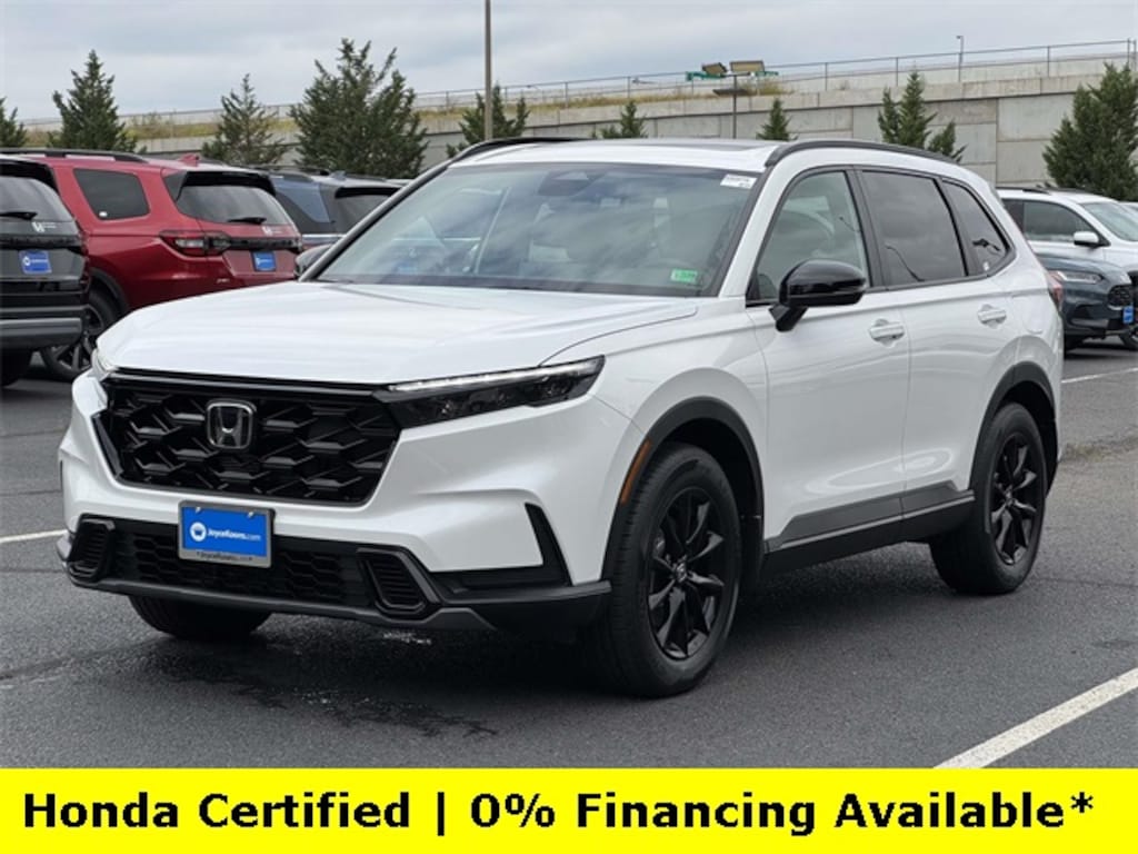 CARFAX One-Owner. Clean CARFAX. Certified. Platinum White Pearl 2026 Honda CR-V Hybrid Sport ***ONE OWNER***, ***LOW MILES***, ***DEALER MAINTAINED***, ***EXCELLENT CONDITION***, ***HONDA CERTIFIED***, ***ALL WHEEL DRIVE***, ***ADAPTIVE CRUISE CONTROL***, ***ALLOY WHEELS***, ***BACK UP CAMERA***, ***BLIND SIDE MONITORING***, ***FORWARD COLLISION ALERT***, ***LANE DEPARTURE WARNING***, ***HEATED SEATS***, ***POWER SEAT***, ***REMOTE START***, HondaTrue Certified Certified, 2.0L I4 DOHC 16V, 4-Wheel Disc Brakes, 6 Speakers, ABS brakes, Adaptive Cruise Control: Adaptive Cruise Control (ACC) with Low-Speed Follow, Air Conditioning, Alloy wheels, Apple CarPlay/Android Auto, Auto High-beam Headlights, Automatic temperature control, Blind Spot Information (BSI) System warning, Brake assist, Bumpers: body-color, Cloth Seat Trim, Compass, Delay-off headlights, Driver door bin, Driver vanity mirror, Dual front impact airbags, Dual front side impact airbags, Electronic Stability Control, Exterior Parking Camera Rear, Four wheel independent suspension, Front anti-roll bar, Front Bucket Seats, Front Center Armrest, Front dual zone A/C, Front reading lights, Fully automatic headlights, Heated door mirrors, Heated Front Bucket Seats, Heated front seats, Illuminated entry, Knee airbag, Leather Shift Knob, Leather steering wheel, Low tire pressure warning, Occupant sensing airbag, Outside temperature display, Overhead airbag, Overhead console, Panic alarm, Passenger door bin, Passenger vanity mirror, Power door mirrors, Power driver seat, Power moonroof, Power steering, Power windows, Radio data system, Radio: 240-Watt AM/FM Audio System, Rear anti-roll bar, Rear reading lights, Rear seat center armrest, Rear side impact airbag, Rear window defroster, Rear window wiper, Remote keyless entry, Security system, Speed control, Speed-sensing steering, Speed-Sensitive Wipers, Split folding rear seat, Spoiler, Steering wheel mounted audio controls, Telescoping steering wheel, Tilt steering wheel, Traction control, Trip computer, Turn signal indicator mirrors, Variably intermittent wipers, Wheels: 18" Berlina Black, 2.0L I4 DOHC 16V.