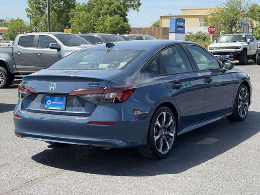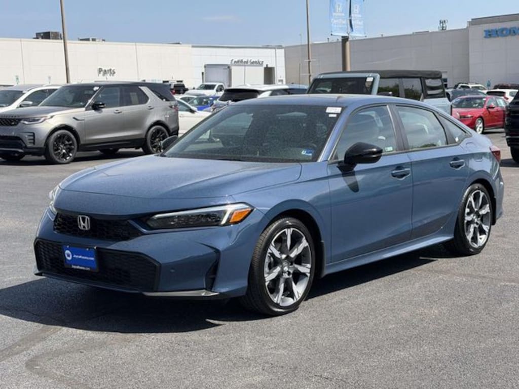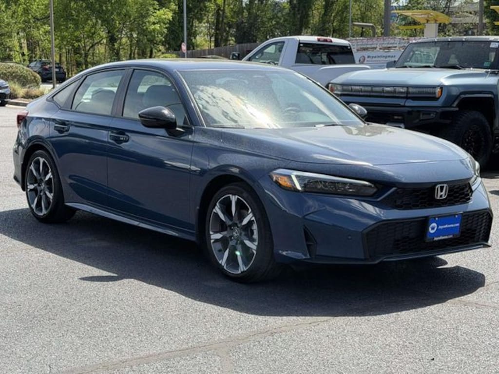 Clean CARFAX. Certified. Blue Lagoon Pearl 2026 Honda Civic Hybrid Sport Touring ***ONE OWNER***, ***LOW MILES***, ***DEALER MAINTAINED***, ***EXCELLENT CONDITION***, ***LOADED***, ***HONDA CERTIFIED***, ***ADAPTIVE CRUISE CONTROL***, ***ALLOY WHEELS***, ***BACK UP CAMERA***, ***BLIND SIDE MONITORING***, ***FORWARD COLLISION ALERT***, ***LANE DEPARTURE WARNING***, ***HEATED SEATS***, ***LEATHER***, ***BOSE SOUND***, ***NAVIGATION***, ***POWER MOONROOF***, ***POWER SEATS***, ***REMOTE START***, HondaTrue Certified Certified, 2.0L 16V DOHC, 12 Speakers, 4-Wheel Disc Brakes, ABS brakes, Adaptive Cruise Control: Adaptive Cruise Control (ACC) with Low-Speed Follow, Air Conditioning, Alloy wheels, AM/FM radio, Apple CarPlay/Android Auto, Auto High-beam Headlights, Auto-dimming Rear-View mirror, Automatic temperature control, Blind Spot Information (BSI) System warning, Bose Premium Sound System, Brake assist, Bumpers: body-color, Compass, Delay-off headlights, Driver door bin, Driver vanity mirror, Dual front impact airbags, Dual front side impact airbags, Electronic Stability Control, Emergency communication system: HondaLink, Exterior Parking Camera Rear, Four wheel independent suspension, Front anti-roll bar, Front Bucket Seats, Front Center Armrest, Front dual zone A/C, Front reading lights, Fully automatic headlights, Heated door mirrors, Heated Front Bucket Seats, Heated front seats, Illuminated entry, Knee airbag, Leather Shift Knob, Leather steering wheel, Leather-Trimmed Seat Trim, Low tire pressure warning, Navigation system: Google Maps, Occupant sensing airbag, Outside temperature display, Overhead airbag, Overhead console, Panic alarm, Passenger door bin, Passenger vanity mirror, Power door mirrors, Power driver seat, Power moonroof, Power passenger seat, Power steering, Power windows, Radio data system, Rain sensing wipers, Rear anti-roll bar, Rear seat center armrest, Rear side impact airbag, Rear window defroster, Remote keyless entry, Security system, Speed control, Speed-sensing steering, Split folding rear seat, Steering wheel mounted audio controls, Tachometer, Telescoping steering wheel, Tilt steering wheel, Traction control, Trip computer, Turn signal indicator mirrors, Variably intermittent wipers, Wheels: 18" Alloy with Matte Shark Gray Inserts, 2.0L 16V DOHC.