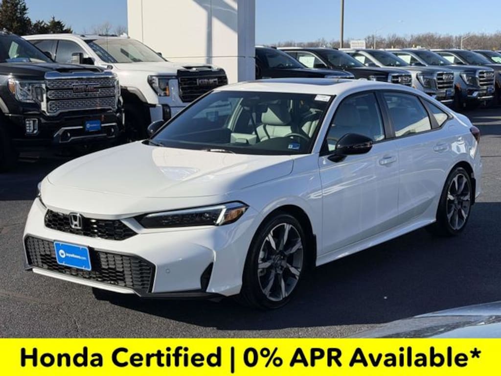 CARFAX One-Owner. Clean CARFAX. Certified. Platinum White Pearl 2026 Honda Civic Hybrid Sport Touring ***ONE OWNER***, ***LOW MILES***, ***DEALER MAINTAINED***, ***EXCELLENT CONDITION***, ***LOADED***, ***HONDA CERTIFIED***, ***ADAPTIVE CRUISE CONTROL***, ***ALLOY WHEELS***, ***BACK UP CAMERA***, ***BLIND SIDE MONITORING***, ***FORWARD COLLISION ALERT***, ***LANE DEPARTURE WARNING***, ***HEATED SEATS***, ***LEATHER***, ***BOSE SOUND***, ***NAVIGATION***, ***POWER MOONROOF***, ***POWER SEATS***, ***REMOTE START***, HondaTrue Certified Certified, 2.0L 16V DOHC, 12 Speakers, 4-Wheel Disc Brakes, ABS brakes, Adaptive Cruise Control: Adaptive Cruise Control (ACC) with Low-Speed Follow, Air Conditioning, Alloy wheels, AM/FM radio, Apple CarPlay/Android Auto, Auto High-beam Headlights, Auto-dimming Rear-View mirror, Automatic temperature control, Blind Spot Information (BSI) System warning, Bose Premium Sound System, Brake assist, Bumpers: body-color, Compass, Delay-off headlights, Driver door bin, Driver vanity mirror, Dual front impact airbags, Dual front side impact airbags, Electronic Stability Control, Emergency communication system: HondaLink, Exterior Parking Camera Rear, Four wheel independent suspension, Front anti-roll bar, Front Bucket Seats, Front Center Armrest, Front dual zone A/C, Front reading lights, Fully automatic headlights, Heated door mirrors, Heated Front Bucket Seats, Heated front seats, Illuminated entry, Knee airbag, Leather Shift Knob, Leather steering wheel, Leather-Trimmed Seat Trim, Low tire pressure warning, Navigation system: Google Maps, Occupant sensing airbag, Outside temperature display, Overhead airbag, Overhead console, Panic alarm, Passenger door bin, Passenger vanity mirror, Power door mirrors, Power driver seat, Power moonroof, Power passenger seat, Power steering, Power windows, Radio data system, Rain sensing wipers, Rear anti-roll bar, Rear seat center armrest, Rear side impact airbag, Rear window defroster, Remote keyless entry, Security system, Speed control, Speed-sensing steering, Split folding rear seat, Steering wheel mounted audio controls, Tachometer, Telescoping steering wheel, Tilt steering wheel, Traction control, Trip computer, Turn signal indicator mirrors, Variably intermittent wipers, 2.0L 16V DOHC.