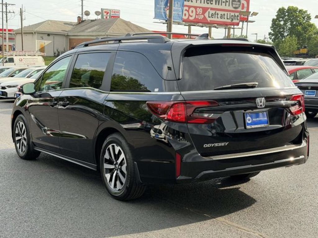 Clean CARFAX. Certified. Crystal Black Pearl 2026 Honda Odyssey EX-L ***ONE OWNER***, ***LOW MILES***, ***DEALER MAINTAINED***, ***EXCELLENT CONDITION***, ***HONDA CERTIFIED***, ***3RD ROW SEATS***, ***ADAPTIVE CRUISE CONTROL***, ***ALLOY WHEELS***, ***BACK UP CAMERA***, ***DUAL POWER SLIDING DOORS***, ***BLIND SIDE MONITORING***, ***FORWARD COLLISION ALERT***, ***LANE DEPARTURE WARNING***, ***HEATED SEATS***, ***LEATHER***, ***SIRIUS XM RADIO***, ***POWER LIFTGATE***, ***POWER MOONROOF***, ***POWER SEATS***, ***REMOTE START***, HondaTrue Certified Certified, 18" Machine-Finished Alloy Wheels, 3rd row seats: split-bench, 4-Wheel Disc Brakes, 7 Speakers, ABS brakes, Adaptive Cruise Control: Adaptive Cruise Control (ACC) with Low-Speed Follow, Air Conditioning, Alloy wheels, AM/FM radio: SiriusXM, Anti-whiplash front head restraints, Apple CarPlay/Android Auto, Auto High-beam Headlights, Auto-dimming Rear-View mirror, Automatic temperature control, Blind Spot Information (BSI) System warning, Brake assist, Bumpers: body-color, Delay-off headlights, Driver door bin, Driver vanity mirror, Driver's Seat Mounted Armrest, Dual front impact airbags, Dual front side impact airbags, Electronic Stability Control, Exterior Parking Camera Rear, Four wheel independent suspension, Front anti-roll bar, Front Bucket Seats, Front dual zone A/C, Front fog lights, Front reading lights, Fully automatic headlights, Garage door transmitter: HomeLink, Heated door mirrors, Heated Front Bucket Seats, Heated front seats, Illuminated entry, Knee airbag, Lane departure: Lane Keeping Assist System (LKAS) active, Leather steering wheel, Leather-Trimmed Seats, Low tire pressure warning, Memory seat, Occupant sensing airbag, Outside temperature display, Overhead airbag, Overhead console, Panic alarm, Passenger door bin, Passenger seat mounted armrest, Passenger vanity mirror, Power door mirrors, Power driver seat, Power Liftgate, Power moonroof, Power passenger seat, Power steering, Power windows, Radio data system, Radio: 160-Watt AM/FM/HD/SiriusXM Audio System, Rear air conditioning, Rear anti-roll bar, Rear reading lights, Rear seat center armrest, Rear window defroster, Rear window wiper, Reclining 3rd row seat, Remote keyless entry, Security system, Speed control, Speed-sensing steering, Speed-Sensitive Wipers, Split folding rear seat, Spoiler, Steering wheel mounted audio controls, Tachometer, Telescoping steering wheel, Tilt steering wheel, Traction control, Trip computer, Turn signal indicator mirrors, Variably intermittent wipers.