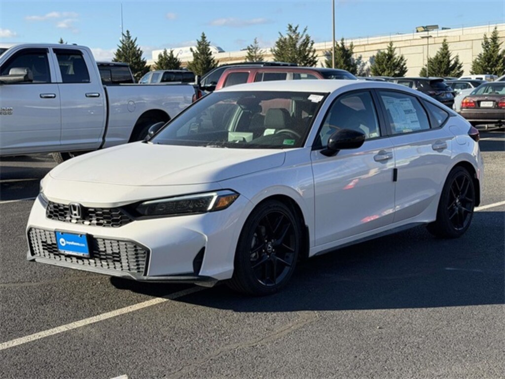 Platinum White Pearl 2025 Honda Civic Sport FWD CVT 2.0L I4 DOHC 16V Black Artificial Leather.