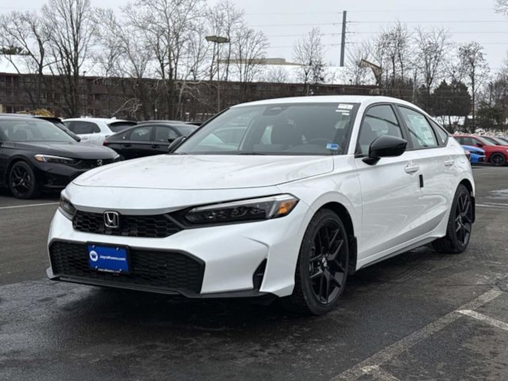 Platinum White Pearl 2026 Honda Civic Sport FWD CVT 2.0L I4 DOHC 16V Black Artificial Leather.