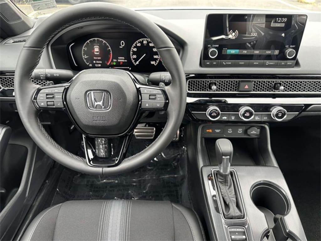 Platinum White Pearl 2026 Honda Civic Sport FWD CVT 2.0L I4 DOHC 16V Black Artificial Leather.