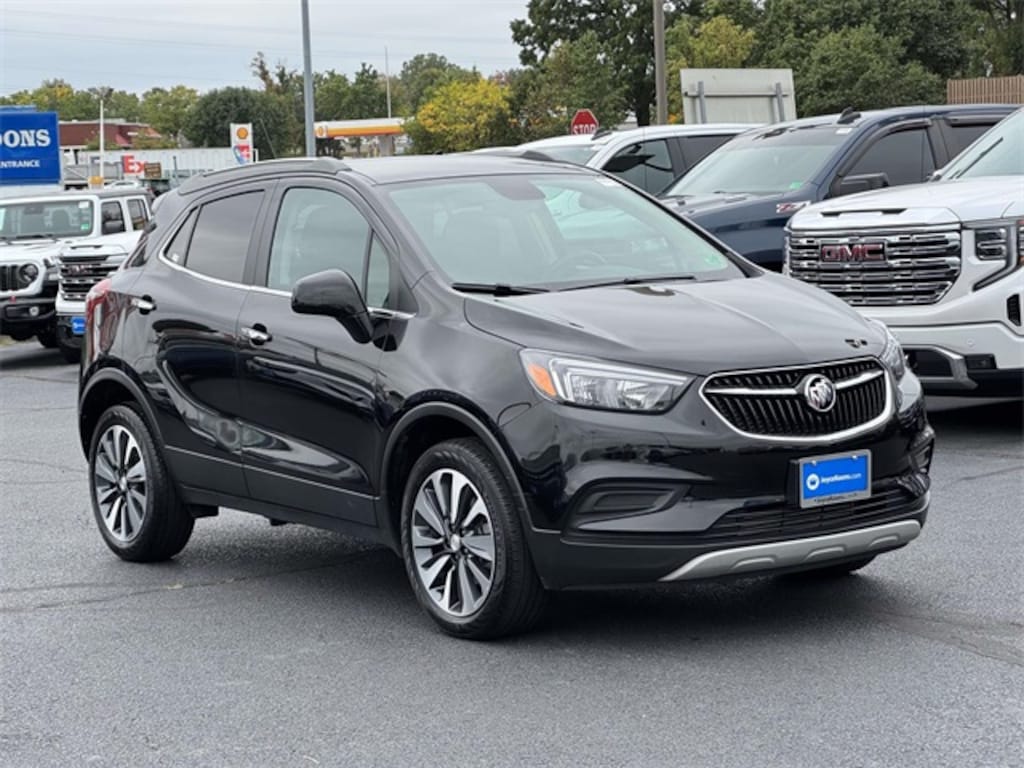 CARFAX One-Owner. Clean CARFAX. Ebony Twilight Metallic 2022 Buick Encore Preferred ***ONE OWNER***, ***LOW MILES***, ***LOCAL TRADE***, ***DEALER MAINTAINED***, ***EXCELLENT CONDITION***, ***LOADED***, ***ALL WHEEL DRIVE***, ***ALLOY WHEELS***, ***BACK UP CAMERA***, ***BLIND SIDE MONITORING***, ***SIRIUS XM RADIO***, ***ON STAR***, ***POWER SEAT***, ***REMOTE START***, 120-Volt Power Outlet, Rear Cross Traffic Alert, Safety Package, Side Blind Zone Alert, 18" Aluminum Wheels, 2-Way Manual Front Passenger Seat Adjuster, 3.53 Final Drive Axle Ratio, 4-Wheel Disc Brakes, 6 Speakers, 6-Speaker Audio System, 6-Way Power Driver Seat Adjuster, ABS brakes, Air Conditioning, All-Weather Floor Mats, Alloy wheels, AM/FM radio: SiriusXM, Apple CarPlay/Android Auto, Brake assist, Buick Interior Protection Package (LPO), Bumpers: body-color, Cloth w/Leatherette Seat Trim, Color-Keyed Carpeted Cargo Mat (LPO), Compass, Delay-off headlights, Driver door bin, Driver vanity mirror, Driver's Seat Mounted Armrest, Dual front impact airbags, Dual front side impact airbags, Electronic Stability Control, Emergency communication system: OnStar and Buick connected services capable, Exterior Parking Camera Rear, Front anti-roll bar, Front Bucket Seats, Front License Plate Bracket, Front reading lights, Front wheel independent suspension, Fully automatic headlights, Heated door mirrors, Illuminated entry, Knee airbag, Leather steering wheel, Low tire pressure warning, Occupant sensing airbag, Outside temperature display, Overhead airbag, Panic alarm, Passenger door bin, Passenger vanity mirror, Power door mirrors, Power driver seat, Power steering, Power windows, Preferred Equipment Group 1SB, Radio data system, Radio: 7" Diagonal Buick Infotainment System, Rear seat center armrest, Rear side impact airbag, Rear window defroster, Rear window wiper, Remote keyless entry, Remote Vehicle Starter System, Ride & Handling Suspension, Roof rack: rails only, Security system, SiriusXM Radio, Speed control, Speed-sensing steering, Split folding rear seat, Spoiler, Steering wheel mounted audio controls, Tachometer, Telescoping steering wheel, Tilt steering wheel, Traction control, Trip computer, Variably intermittent wipers, 120-Volt Power Outlet, Rear Cross Traffic Alert, Safety Package, Side Blind Zone Alert.