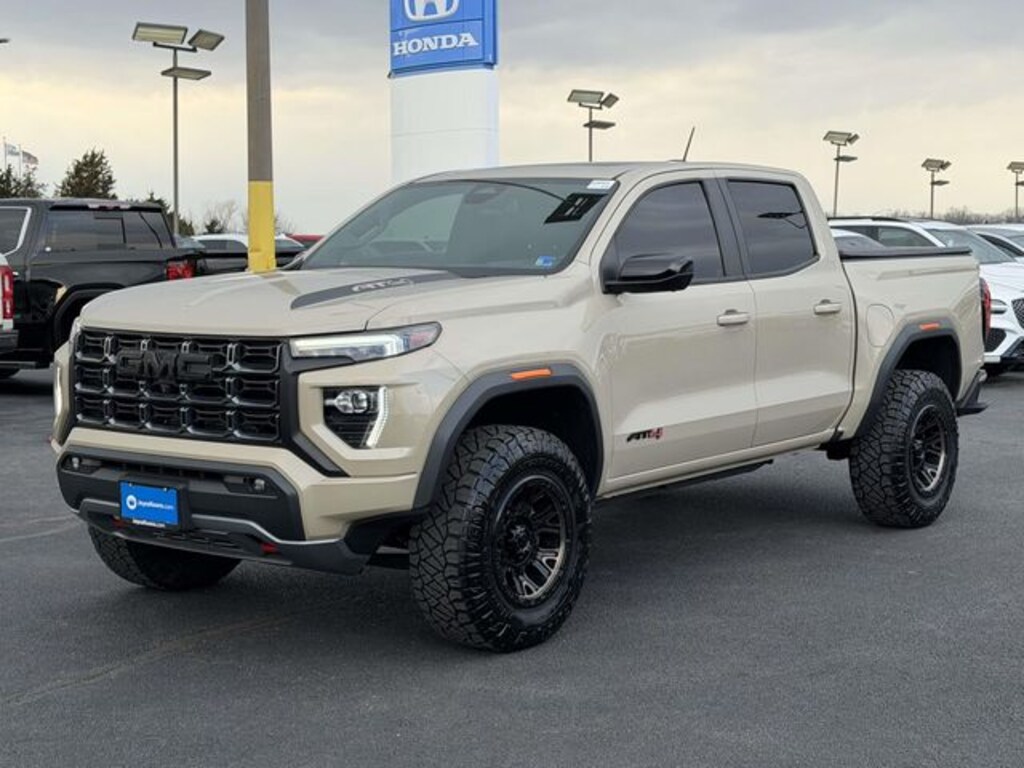 CARFAX One-Owner. Clean CARFAX. Desert Sand Metallic 2023 GMC Canyon AT4 ***ONE OWNER***, ***LOW MILES***, ***LOCAL TRADE***, ***DEALER MAINTAINED***, ***EXCELLENT CONDITION***, ***LOADED***, ***4 WHEEL DRIVE***, ***ADAPTIVE CRUISE CONTROL***, ***ALLOY WHEELS***, ***BACK UP CAMERA***, ***BED LINER***, ***HEADS UP DISPLAY***, ***COOLED SEATS***, ***BLIND SIDE MONITORING***, ***FORWARD COLLISION ALERT***, ***LANE DEPARTURE WARNING***, ***HEATED SEATS***, ***HEATED STEERING WHEEL***, ***LEATHER***, ***SIRIUS XM RADIO***, ***ON STAR***, ***POWER MOONROOF***, ***POWER SEATS***, ***REMOTE START***, ***TOW PACKAGE***, 4WD, 6-Way Power Passenger Seat Adjuster, Adaptive Cruise Control, AT4 Premium Package, Blind Zone Steering Assist, Canyon Safety Plus Package, Driver & Front Passenger Ventilated Seats, Driver Memory, Driver Seatback Map Pocket, HD Surround Vision, Heated front seats, Heated Steering Wheel, Integrated Trailer Brake Controller, Multicolor 6.3" Diagonal Head-Up Display, Perforated Leather-Appointed Seat Trim, Power Passenger Lumbar Control Seat Adjuster, ProGrade Trailering System, Rear Center Fold-Down Armrest w/2 Cupholders, Rear Cross Traffic Braking, Rear Pedestrian Alert, Technology Plus Package, Trailering App System, Trailering Package, Ultrasonic Rear Park Assist, Wireless Charging, 120-Volt Bed Mounted Power Outlet, 2 1st Row USB Charge/Data Ports, 2 Rear USB Ports in Center Console (Charge-Only), 220 Amps Alternator, 3.42 Rear Axle Ratio, 4-Way Manual Front Passenger Seat Adjuster, 4-Wheel Disc Brakes, 6-Speaker Audio System Feature, 8-Way Power Driver Seat Adjuster, Alloy wheels, AM/FM radio: SiriusXM, Auto High-beam Headlights, Automatic Emergency Braking, Automatic Locking Rear Differential, Automatic Stop/Start, Brake assist, Canyon Pro Safety, Compass, Delay-off headlights, Driver Mode Selector, Dual-Zone Automatic Air Conditioning, Electronic Stability Control, EZ-Lift & Lower Tailgate, Following Distance Indicator, Forward Collision Alert, Front Bucket Seats, Front fog lights, Front LED Fog Lamps, Front Passenger Seatback Map Pocket, Front Pedestrian & Bicyclist Braking, Heated Power-Adjustable Outside Mirrors, Illuminated entry, Inside Rear-View Auto-Dimming Mirror, IntelliBeam Automatic High Beam On/Off, Interior Overhead Courtesy Light w/Dual Reading Lamp, Lane Keep Assist w/Lane Departure Warning, Manual Rear-Sliding Window, MultiStow Tailgate, Navigation System, Panic alarm, Power Driver Lumbar Control Seat Adjuster, Power driver seat, Power Inner Sliding Glass Sunroof w/Manual Shade, Power steering, Power windows, Preferred Equipment Group 4SG, Radio data system, Radio: 11.3" Diagonal Premium GMC Infotainment Sys, Rear of Console 120-Volt Power Outlet, Rear step bumper, Rear-Window Electric Defogger, Remote keyless entry, Remote Vehicle Starter System, Security system, SiriusXM w/360L, Speed control, Speed-sensing steering, Spray-On Bedliner, Steering wheel mounted audio controls, Stop/Start System Disable Button Engine Control, Tailgate Keyed Cylinder Lock, Traction control, Wireless Apple CarPlay/Wireless Android Auto, 4WD, 6-Way Power Passenger Seat Adjuster, Adaptive Cruise Control, AT4 Premium Package, Blind Zone Steering Assist, Canyon Safety Plus Package, Driver & Front Passenger Ventilated Seats, Driver Memory, Driver Seatback Map Pocket, HD Surround Vision, Heated front seats, Heated Steering Wheel, Integrated Trailer Brake Controller, Multicolor 6.3" Diagonal Head-Up Display, Perforated Leather-Appointed Seat Trim, Power Passenger Lumbar Control Seat Adjuster, ProGrade Trailering System, Rear Center Fold-Down Armrest w/2 Cupholders, Rear Cross Traffic Braking, Rear Pedestrian Alert, Technology Plus Package, Trailering App System, Trailering Package, Ultrasonic Rear Park Assist, Wireless Charging.