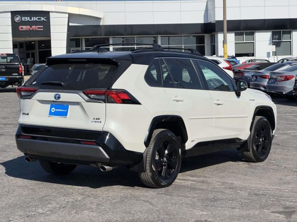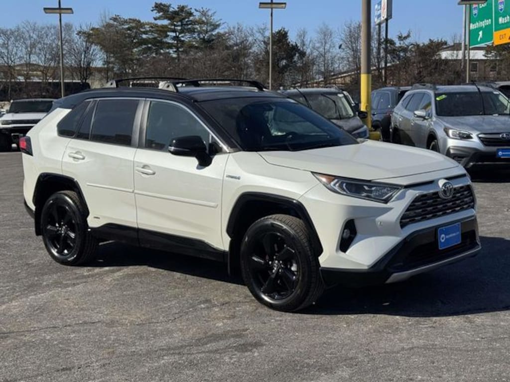 CARFAX One-Owner. Blizzard Pearl/Midnight Black Metallic 2021 Toyota RAV4 Hybrid XSE ***ONE OWNER***, ***LOCAL TRADE***, ***DEALER MAINTAINED***, ***LOADED***, ***ALL WHEEL DRIVE***, ***ALLOY WHEELS***, ***BACK UP CAMERA***, ***BLIND SIDE MONITORING***, ***FORWARD COLLISION ALERT***, ***LANE DEPARTURE WARNING***, ***HEATED SEATS***, ***HEATED STEERING WHEEL***, ***POWER MOONROOF***, ***POWER SEAT***, 2.5L 4-Cylinder, Blind Spot Monitor, Front & Rear Parking Assist w/Automated Braking, Heated 3-Spoke Leather Steering Wheel, Intelligent Clearance Sonar (ICS), Qi-Compatible Wireless Smartphone Charging, Rain Sensing Front Wipers, Wiper Deicer, XSE Advanced Technology Package, XSE Grade Weather Package, 3 Spoke Leather Steering Wheel, 4-Wheel Disc Brakes, 6 Speakers, ABS brakes, Air Conditioning, Alloy wheels, AM/FM radio: SiriusXM, Anti-Theft System, Apple CarPlay/Android Auto, Auto High-beam Headlights, Auto-dimming Rear-View mirror, Automatic temperature control, Axle Ratio: TBD, Brake assist, Bumpers: body-color, Delay-off headlights, Driver door bin, Driver vanity mirror, Dual front impact airbags, Dual front side impact airbags, Electronic Stability Control, Emergency communication system: Safety Connect with 1-year trial, Four wheel independent suspension, Front anti-roll bar, Front Bucket Seats, Front Center Armrest, Front Door Smart Key System w/Push Button Start, Front dual zone A/C, Front Fog & Driving Lamp, Front fog lights, Front reading lights, Front Seat Heating, Fully automatic headlights, Garage door transmitter: HomeLink, Heated door mirrors, Heated Front Seats, Heated front seats, Illuminated entry, Knee airbag, Lane Departure Warning System, Leather Shift Knob, Low tire pressure warning, Occupant sensing airbag, Outside temperature display, Overhead airbag, Overhead console, Panic alarm, Passenger door bin, Passenger vanity mirror, Power door mirrors, Power driver seat, Power Liftgate, Power moonroof, Power steering, Power windows, Radio data system, Radio: Audio Plus, Rear anti-roll bar, Rear seat center armrest, Rear window defroster, Rear window wiper, Remote keyless entry, Roof rack: rails only, Security system, SofTex Seat Trim (EC), Speed control, Speed-sensing steering, Split folding rear seat, Spoiler, Steering wheel mounted audio controls, Telescoping steering wheel, Tilt steering wheel, Traction control, Trip computer, Turn signal indicator mirrors, Variably intermittent wipers, Wheels: 18" x 7.0J Black-Painted Aluminum Alloy, 2.5L 4-Cylinder, Blind Spot Monitor, Front & Rear Parking Assist w/Automated Braking, Heated 3-Spoke Leather Steering Wheel, Intelligent Clearance Sonar (ICS), Qi-Compatible Wireless Smartphone Charging, Rain Sensing Front Wipers, Wiper Deicer, XSE Advanced Technology Package, XSE Grade Weather Package.